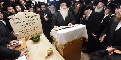 Dans la nuit, un repas a été donné sous la direction du fils du défunt, qui est le nouveau Admour de Sanz. Ce dernier a remis des prix à 1 000 jeunes gens qui avaient passé avec succès un examen sur mille pages de Guemara et à un groupe d’étudiants de Yeshivot qui avaient été testés sur tout le Shass.