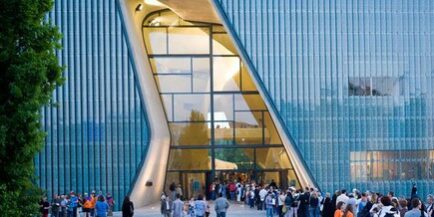 Les plans du bâtiment sont l’œuvre d’une équipe d’architectes finlandais qui ont tenu à marquer d’une fissure sa façade en verre pour symboliser le « passage de la Mer Rouge ».