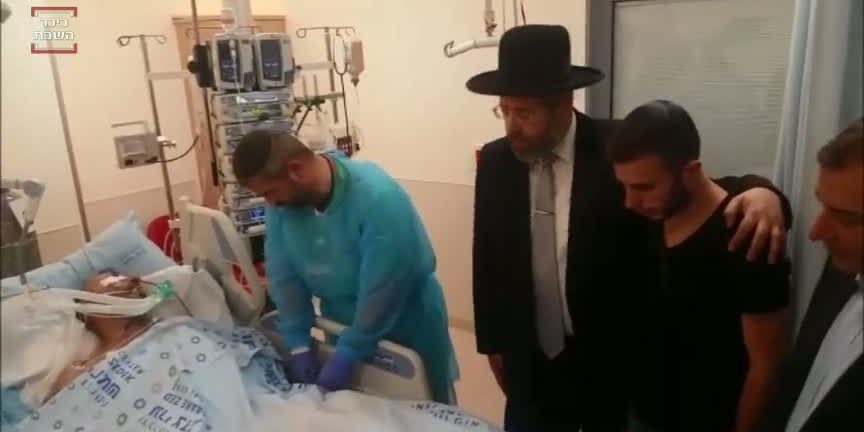 Le Rav David Lau, prenant affectueusement par l’épaule le fils du blessé, a récité des chapitres de Tehilim devant le lit du patient et l’a béni ainsi que toute sa famille, tentant par ce geste de leur apporter du réconfort.